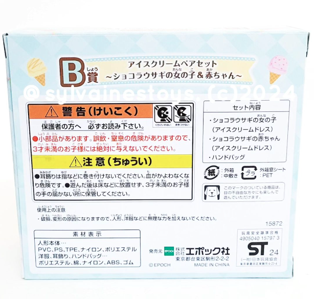 SF JP FamilyMart Twinkle Lottery/Kirakira Kuji 2024 - Delicious Parade Series Prize B 15797-3 - a pair of Chocolate Rabbit girl and baby dressed in ice cream-themed outfits.